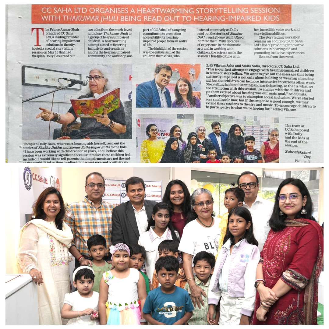 One particular event was organized by C.C. Saha Ltd. This was led by the renowned theatre artist Ms. Dolly Basu. The children were captivated by the Bengali heritage folk tales from ‘Thakurmar Jhuli,’ and despite both the storyteller and the young listeners wearing hearing aids, the interaction was so seamless that it felt like any hearing barriers had disappeared.