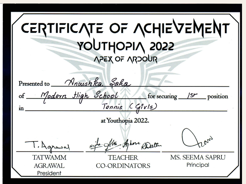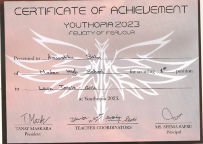 I have become the President of my school club ‘Scribes’: The Writing Club. I have also become the School’s Hindi Editorial Board Editor-in-Chief. MHS also came first in an interschool event called ‘Youthopia’ and we got the Champions Trophy.