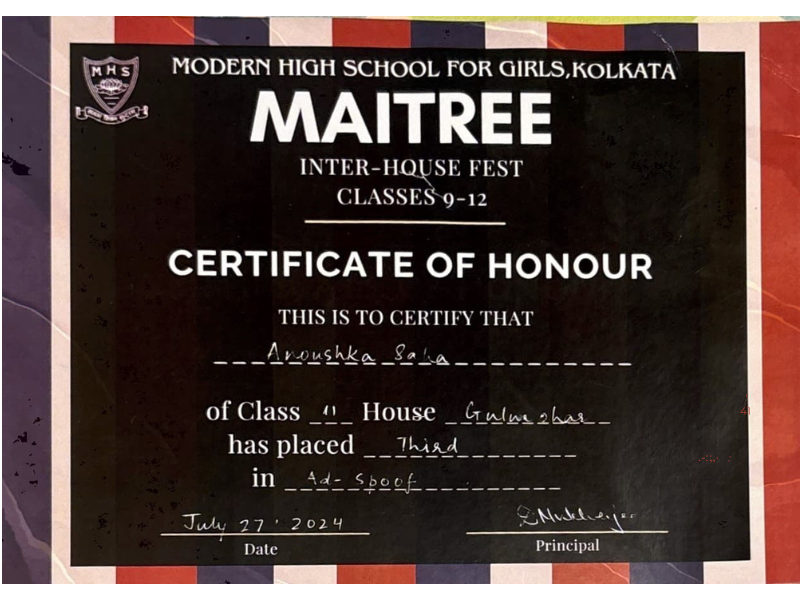 Education has always been a cornerstone of my life, and I’m proud to share my academic achievements with you. I am currently studying at Modern High School for Girls where I have pursued a diverse and rigorous curriculum. My favorite subjects include Economics & Maths, which have inspired me to delve deeper into Economics & Finance. I have also participated in various academic competitions and extracurricular activities that have enriched my learning experience.